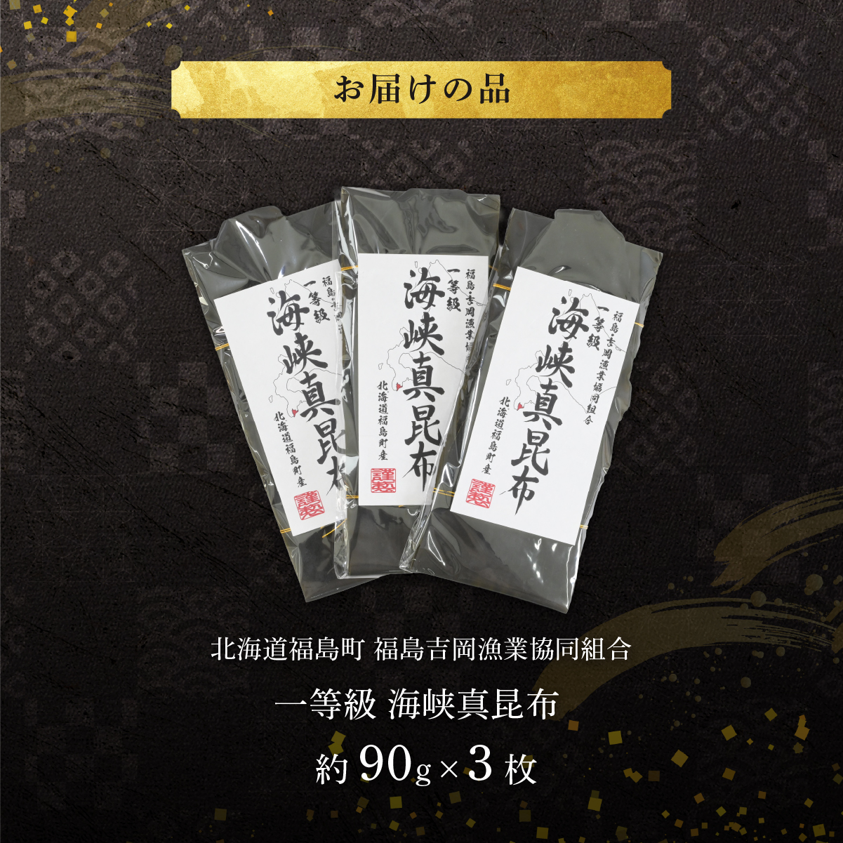 北海道福島町 福島吉岡漁業協同組合 一等級 海峡真昆布 ×3枚 FKB078