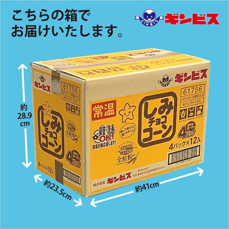 - しみチョココーン全粒粉4P×12個入り(ケース) | 菓子 お菓子 大容量 おかし おやつ おつまみ つまみ スナック スナック菓子 ギンビス しみチョコ ご家庭用 手土産 ギフト 贈答 贈り物 プレゼント お中元 お歳暮 夏休み 冬休み 茨城県 古河市 _DI16