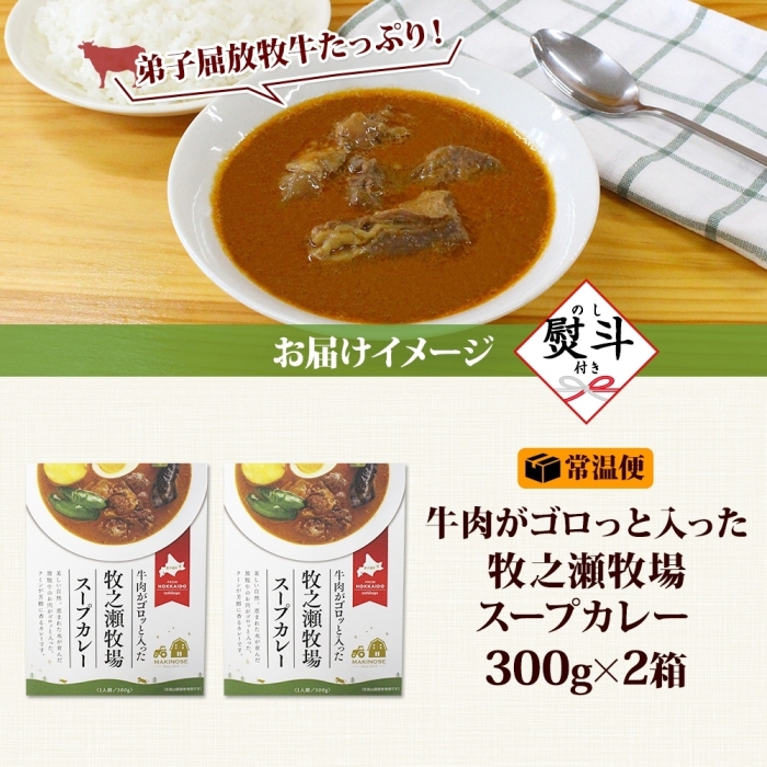 3025. 無地熨斗 ビーフ スープカレー 300g 2袋 カレー ビーフカレー スープ 牛 牛肉 放牧牛 牧場 レトルトカレー レトルト食品 レトルト 湯煎 レンジ 牧之瀬牧場 送料無料 北海道 弟子屈町
