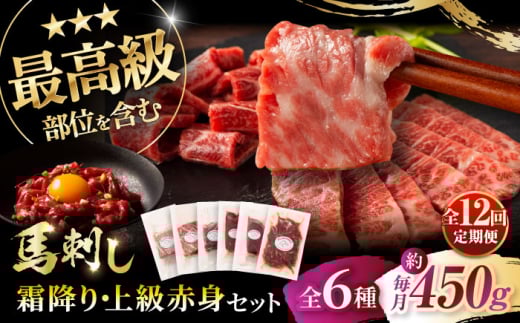 【全12回定期便】「本場・熊本」霜降り馬刺しと赤身の贅沢6種セット 3894 / 馬刺し 熊本馬刺し 熊本 菊陽 ユッケ タレ ヒレ 赤身 醬油 生姜【株式会社フジチク】 [BHAD077]