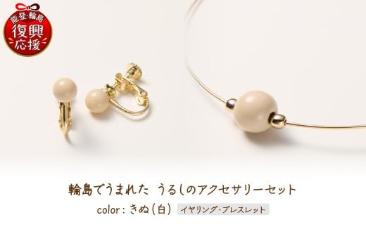 - 輪島でうまれた うるしのアクセサリーセット【イヤリング&ブレスレット】きぬ(白) wa110-030