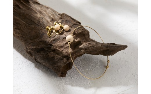 輪島でうまれた うるしのアクセサリーセット【イヤリング&ブレスレット】きぬ(白) wa110-030