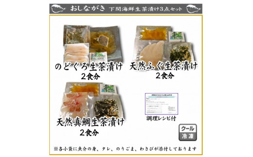 - 【7営業日以内発送】 天然 のどぐろ 真鯛 ふぐ 生茶漬け 冷凍 3点 セット 6人前 各2食分 ( 刺身 海鮮丼 漬け丼 魚介 高級魚 タイ 鯛 真鯛 ふぐ 河豚 ノドグロ お手軽 便利 個包装 小分け 食べ比べ 人気 加工品 海鮮 詰め合わせ 一人暮らし 簡単 流水解凍 ギフト プレゼント 父の日 お歳暮 お中元 ) 山口県 下関市 【 12/21申込分まで 年内配送 】
