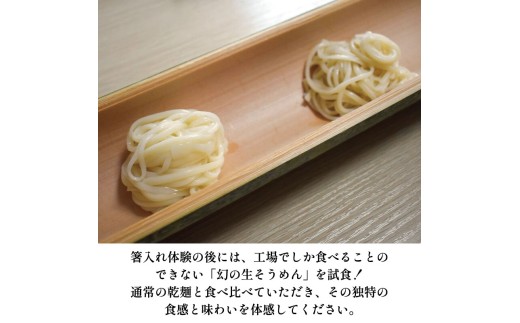 - 半田そうめん 工場見学 大人3名様 《 食べ比べ お土産 つき! 》 チケット そうめん 箸入れ体験 生そうめん 試食 素麺 麺 家族 ファミリー 親子 旅行 観光 体験 徳島 つるぎ町