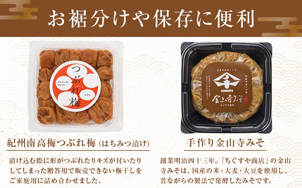 紀州南高梅つぶれ梅(はちみつ漬)と手作り金山寺みそ 各400g [AJ11]