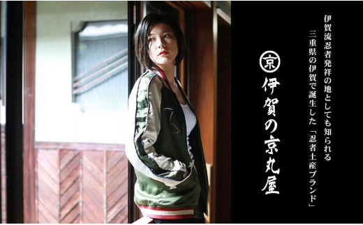 - 伊賀くみひも 忍者スカジャン(グリーン×ベージュ)男女兼用【レギュラーフィット/サイズ選択可】