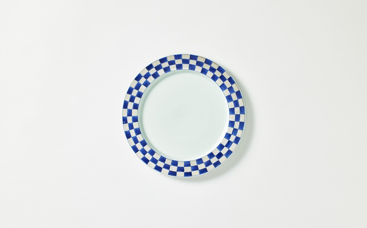 【福珠窯】有田焼/銀彩染付市松縁起皿24㎝