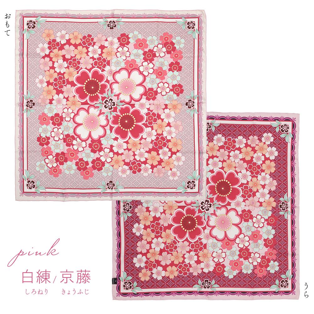 【佐々木染工】 京友禅スカーフ シルク100% <桜七宝 白練/京藤(ピンク)> 261009_B-SP04VC03