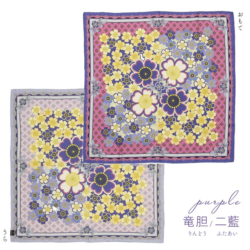 - 【佐々木染工】 京友禅スカーフ シルク100% <桜七宝 竜胆/二藍(パープル)> 261009_B-SP04VC04