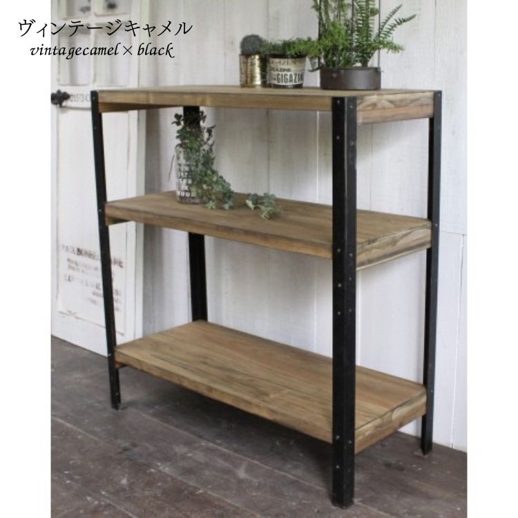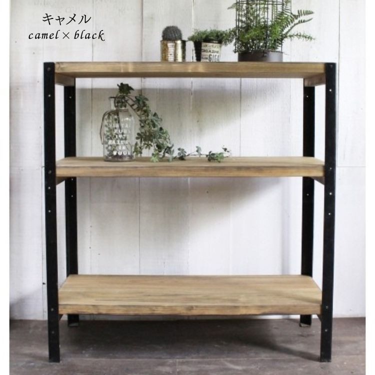 無垢材+アイアンラック 幅86cm【受注生産】完成品 オープンラック 職人手作り おしゃれ アンティーク シェルフ 家具 インテリア 人気