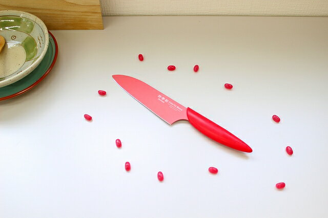 - 【ふるさと納税】志津刃物製作所:カラフルビーンズ 三徳包丁 赤色 フッ素コーティング H7-82 ~オールレッド、赤、刃が赤い、切り離れがよい かわいい キュート 女性 カラー パステルカラー おしゃれ インスタ映え 映える