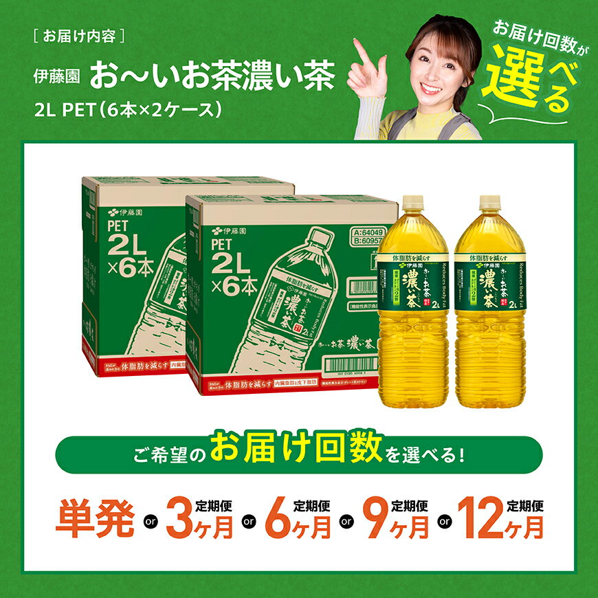 【ふるさと納税】※回数が選べる※お〜いお茶 濃い茶2L×6本×2ケース - 備蓄 定期便 ペットボトル セット お茶 濃い茶 カテキン 2L ソフトドリンク お〜いお茶 送料無料
