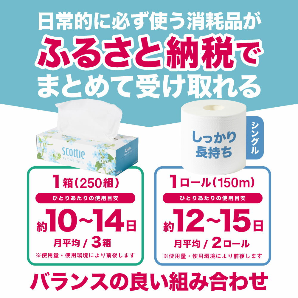 【ふるさと納税】【選べる内容量・発送回数】【スコッティ】 ティシュー フラワーボックス 250組( 5箱パック ) フラワーパック 3倍長持ち 4ロール ( シングル ) パック ティッシュ トイレットペーパー セット 消耗品 まとめ買い 備蓄 防災 ストック 日用品 送料無料