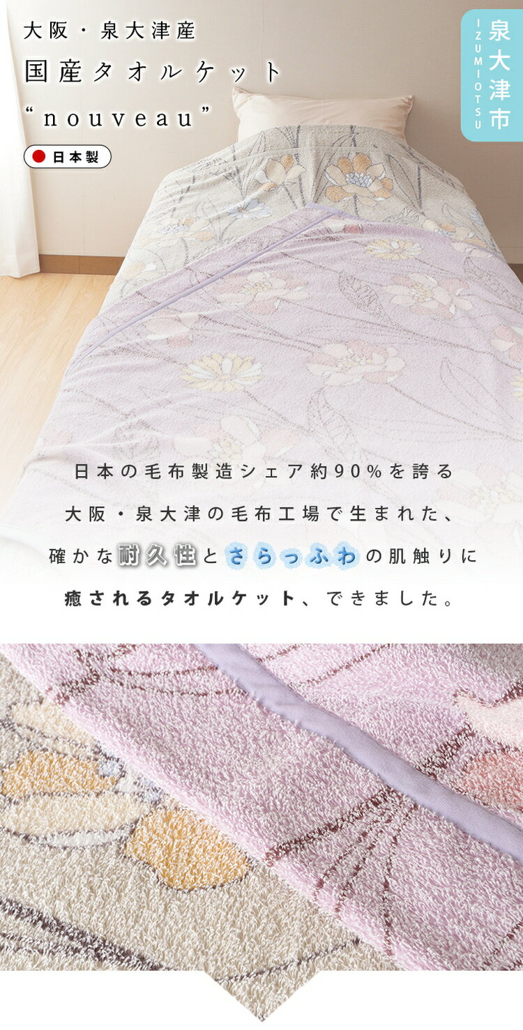 - 【ふるさと納税】【Dear Japan】タオルケット「nouveau」 シングル グリーン/パープル 4400780F