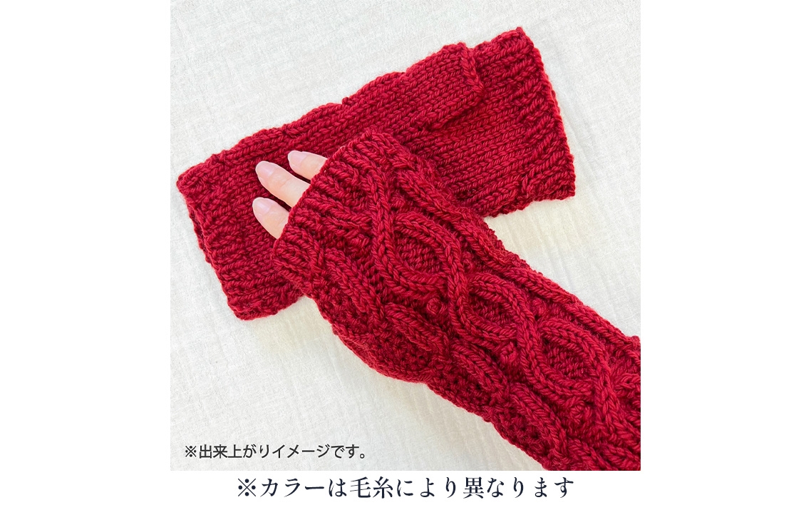 毛糸 2玉で編めるケーブル模様のハンドウォーマーキット 13番色 / 編み物キット ハンドウォーマー ウルグアイウール 並太 模様編み ハンドメイド 趣味 手作り 編み図付き 愛知県 No.347
