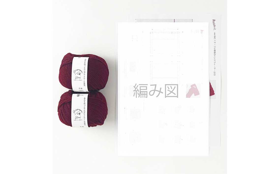 - 毛糸 2玉で編めるケーブル模様のハンドウォーマーキット 13番色 / 編み物キット ハンドウォーマー ウルグアイウール 並太 模様編み ハンドメイド 趣味 手作り 編み図付き 愛知県 No.347
