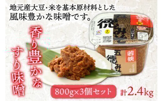 - 五徳みそ すり 800g×3個セット 計2.4kg 国内産米・大豆100%使用 [BFAY007]