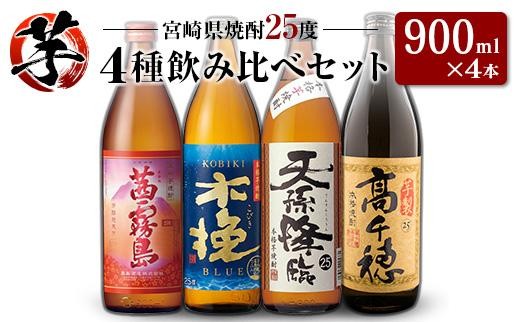 「宮崎県芋焼酎」茜霧島・木挽BLUE・天孫降臨・芋製高千穂 25度 900ml瓶 飲み比べ4本セット