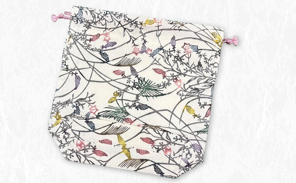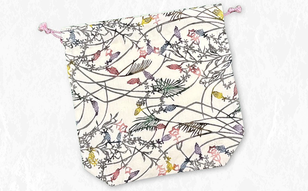 手挿し 江戸紅型染 巾着 Aタイプ 紐 ピンク|おしゃれ 粋 和 和風 小物 [1164]