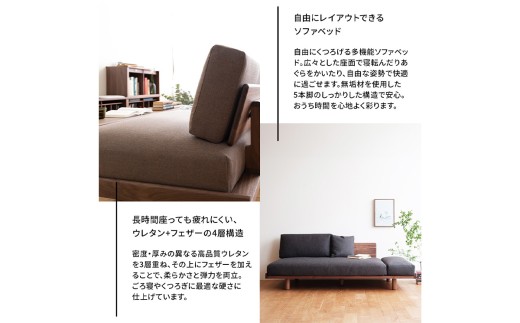 府中家具 PISOLINO Sofa Bed 193 オーク 生地:ラムース/ディープブルー / ソファベッド コンパクト 広座面 ゆったり くつろぎ 高品質ウレタン 疲れにくい 明るい色味 はっきりとした木目 美しさが映える 木製 椅子 インテリア 家具 広島県 No.1106-11