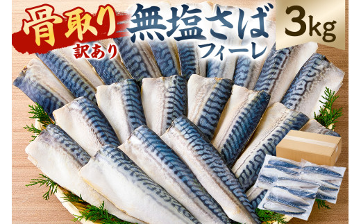 - 【訳あり】骨取り無塩さばフィーレ3kg (1kg×3袋) mi0012-0149 【サバ 無塩 骨取り 魚 魚介 お弁当 惣菜 おかず 小分け 切り身 個別冷凍】