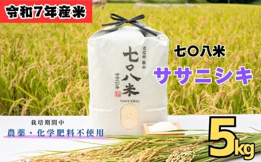 【令和7年産】七〇八米 ササニシキ 精米 5kg <栽培期間中 農薬・化学肥料不使用> (7-83) お米 コメ 白米 ご飯 長野県 信州 飯山市 令和7年 ささにしき 産地直送 農家直送 無農薬