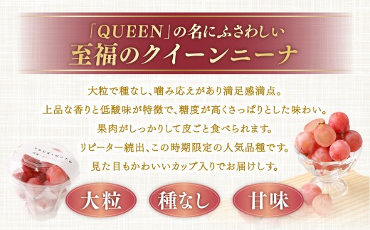 《種なし》 岡山県産 クイーンニーナ 手軽なカップタイプ 約300g × 2カップ 計約600g 【2026年8月下旬-9月下旬発送予定】 / ぶどう ブドウ 葡萄 大粒 種なし 種無し フルーツ 果物 くだもの 果実 カップ入り カップ お手軽