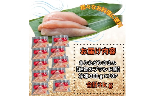 佐賀県ブランド鶏 ありたどり ささみ 3Kg(300g×10P) 188-L095