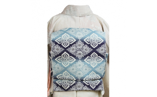 - 車いす用 着物レンタル 3日間 <小紋:淡いピンク色縦縞模様 太鼓帯:青色 草花文(草履付き)> │ キモノ 帯 セット レンタルサービス 車椅子 成人式 卒業式 七五三 婚礼 茨城県 つくば市