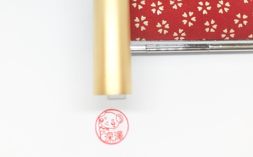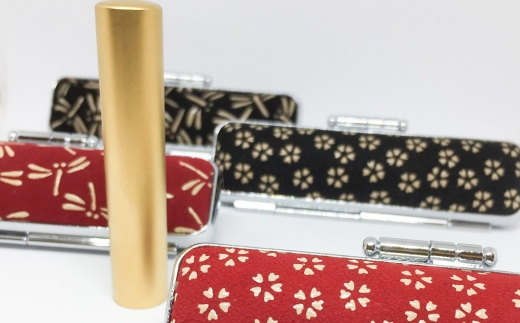 - 【赤地に白漆トンボ柄】印鑑 甲州印伝ケース付ゴールドチタン印鑑12mm丸