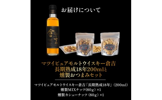 - マツイピュアモルトウイスキー倉吉18年(200ml)と燻製おつまみセット ウイスキー おつまみ セット 燻製 ナッツ お酒 酒 アルコール 鳥取県 倉吉市