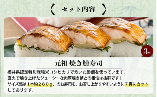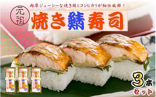 【先行予約】焼き鯖寿司の元祖が贈る 「元祖焼き鯖寿司」 3本セット 1本あたり 約280g ~家族が喜ぶ手土産~ 【2026年3月下旬より順次発送予定】 【名物 ジューシー 焼きさば 押し寿司 さば寿司 すし こしひかり 贈答 ギフト お土産 大人気】 [A-0574]