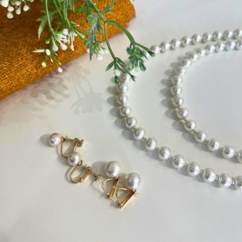 - コットンパール「キスカ」ロングネックレス(金具ゴールド)とイヤリング2点セット | 結婚式 二次会 パーティー 入学式 卒業式 華やか