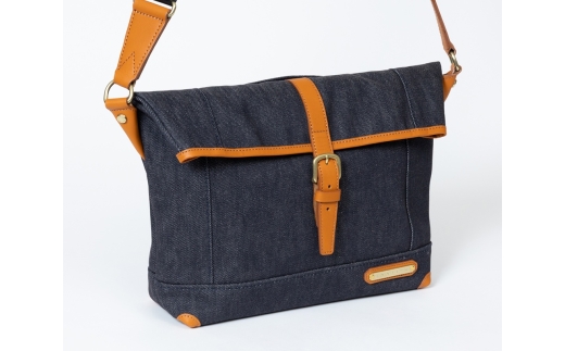 - No55735 INNFITH デニム口折れショルダーバッグ(ダークネイビー×キャメル)|ファッション 小物 バッグ ショルダーバッグ 鞄 [1175]