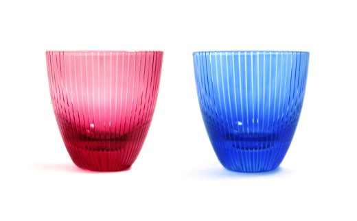 浅草切子 KANA KURITA「ぐい呑 千筋 青藍/金赤」ペアセット 木箱入り| 切子 花切子 切子ガラス ガラス工芸 グラス ガラス コップ 手作り ぐい呑み 家飲み 酒器 ハンドメイド 手作り ギフト 贈答 プレゼント
