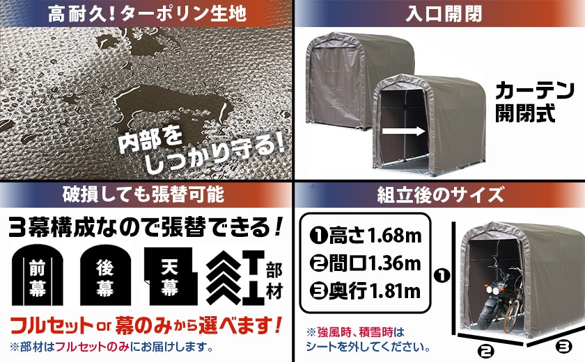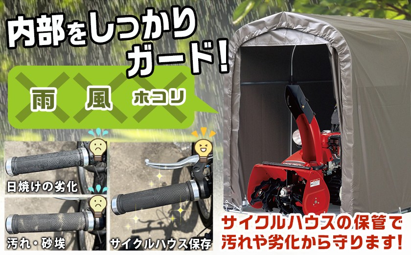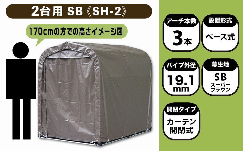 サイクルハウス2台用SB【カーテン開閉式】〈SH-2〉_65-J404-S2026_(都城市) サイクルハウス 2台用 スーパーブラウン カーテン開閉式 組立式 収納 便利 耐久性 張替用幕 前幕 後幕 天幕 幕取替