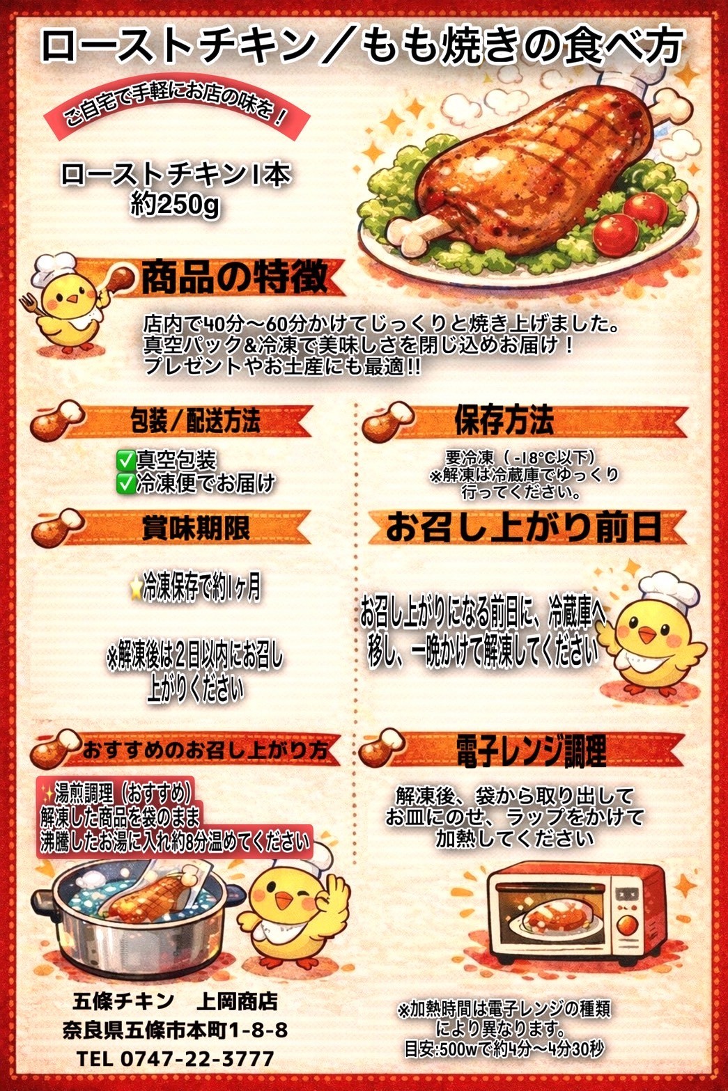 - 【選べる内容量】1本 / 2本 / 3本 五條チキン 50年以上変わらぬ味 国産もも焼きローストチキン | 肉 にく ニク お肉 ローストチキン チキン 鶏肉 もも肉 もも 国産 冷凍 オリジナル おかず ディナー 急速冷凍 | 奈良県 五條市