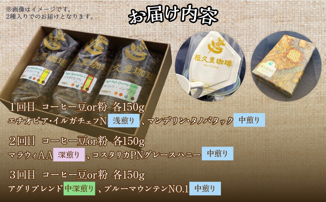 - 【3ヶ月定期便】【選べる 豆/粉】椏久里珈琲スペシャルティコーヒー【 ふるさと納税 人気 おすすめ 珈琲 コーヒー コーヒー豆 粉 カフェ セット 本格 復興 福島 飯舘村 】ITTAD018-v