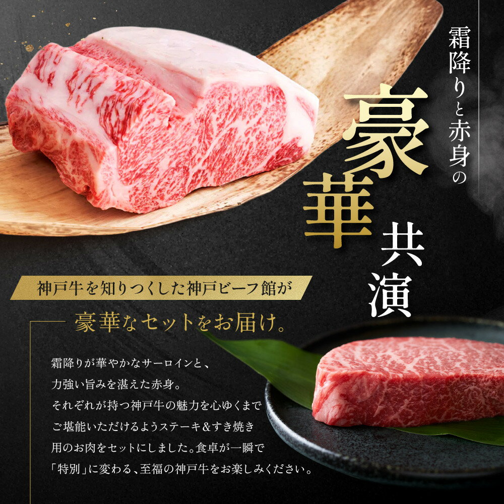 【ふるさと納税】【冷蔵便】神戸牛 ステーキ&すき焼き 食べ比べ セット(サーロイン200g×2枚、ウデスライス350g)計750g