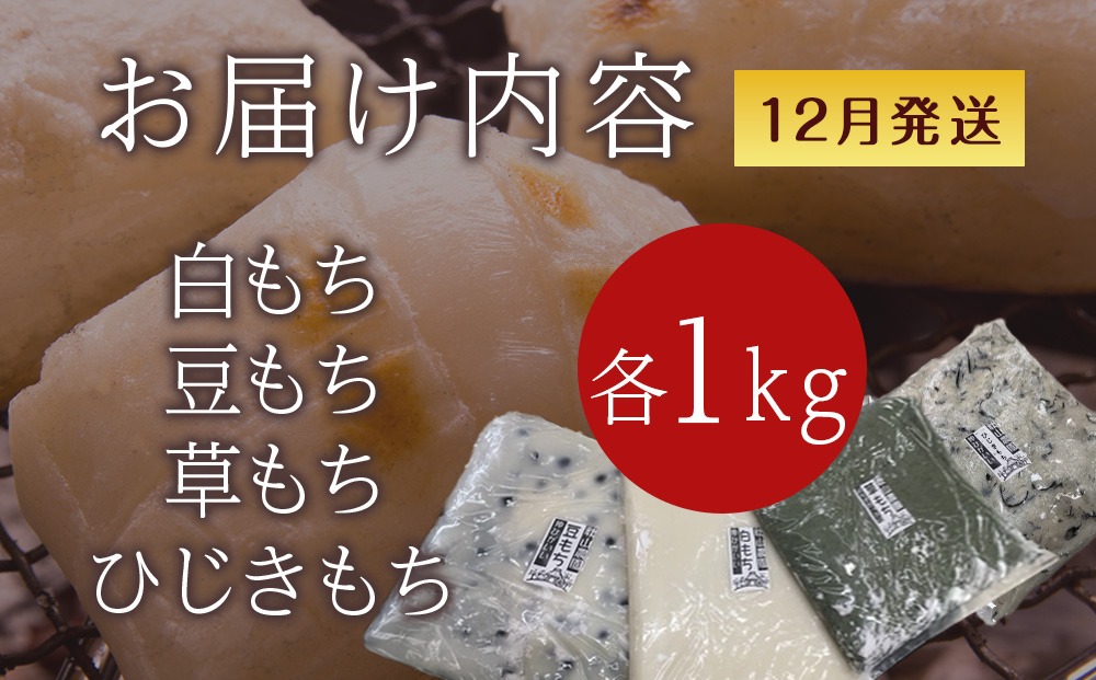 ≪12月以降発送予約≫のし餅食べ比べセット のし餅4種(白のし餅 豆のし餅 ひじきのし餅 よもぎのし餅 )〈冷凍〉木古内町 【秋山農園】1kg