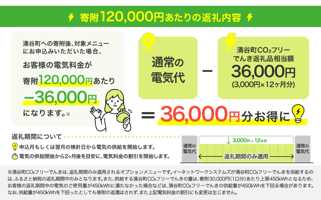 涌谷町CO2フリーでんき 3,000円×12ヶ月コース(注:お申込み前に申込条件を必ずご確認ください)東北電力 電気 電力 東北 電気代 電気料金 青森県 岩手県 宮城県 秋田県 山形県 福島県 新潟県 でんき【ens004】