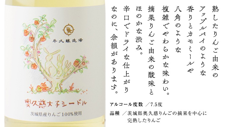 - 奥久慈大子シードル 750ml×1 茨城県産 牛久醸造場 日本ワイン ワイン お酒 贈り物 上品 果実 クリスマス 誕生日スパークリング りんご 辛口 微発砲 Japan Cider Cup 2025