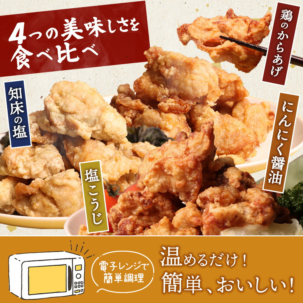 【ふるさと納税】【レンジで簡単】知床からあげ【知床の塩・にんにく醤油・塩こうじ】もも肉と鶏のからあげ1kgセット | 唐揚げ 全4種 知床 塩 にんにく 醤油 麹 鶏 レンチン 冷凍食品 時短 ザンギ 惣菜 北海道 中標津町 中標津【3502201】