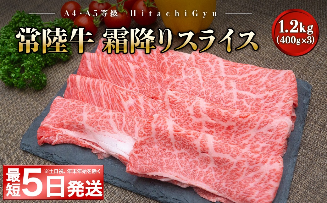 <最短5日発送> 常陸牛 霜降りスライス 1.2kg (400g×3パック) すき焼き・しゃぶしゃぶ用 K2424