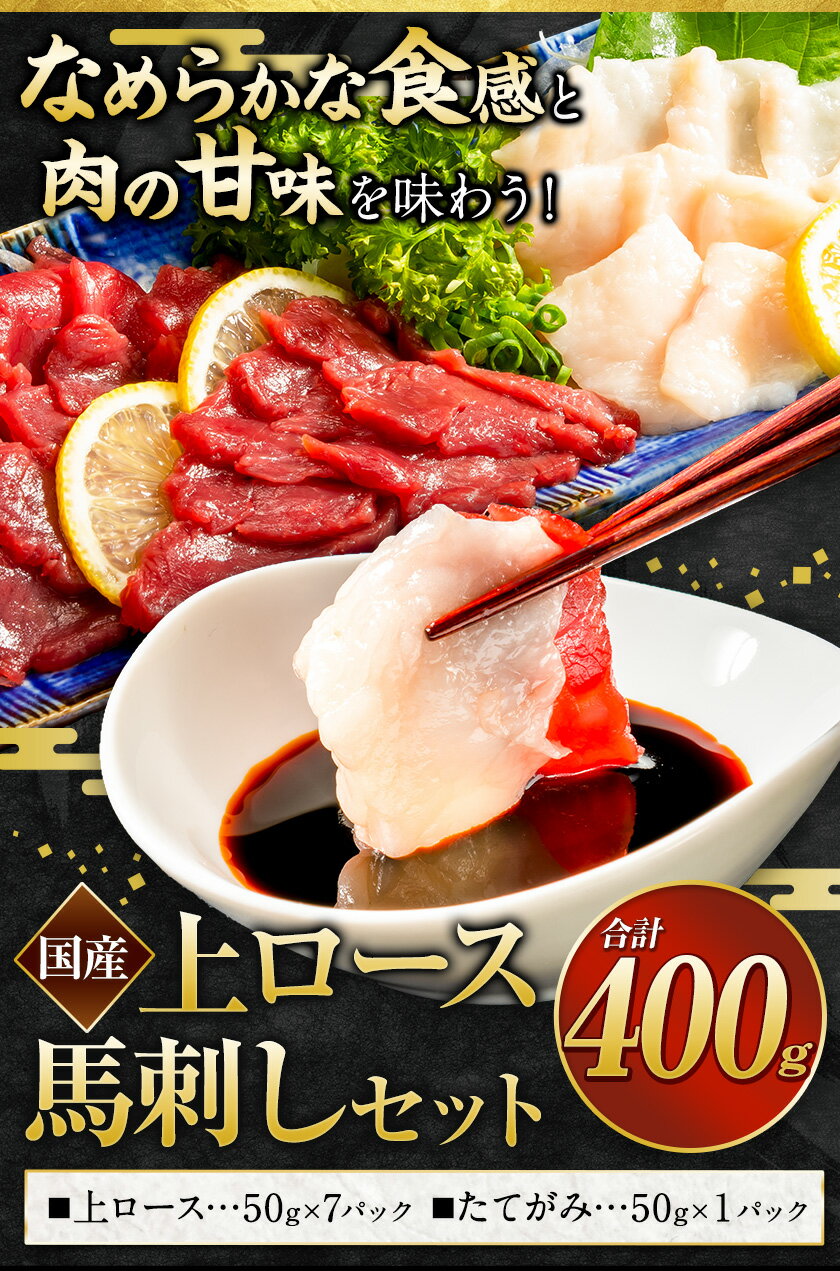 - 【ふるさと納税】馬刺し 国産 上ロース馬刺しセット 合計400g 50g小分け《90日以内に出荷予定(土日祝除く)》 たてがみ コーネ ブロック 国産 熊本肥育 冷凍 生食用 肉 馬ロース 絶品 牛肉よりヘルシー 馬肉 熊本県玉東町 送料無料 楽天スーパーSALE