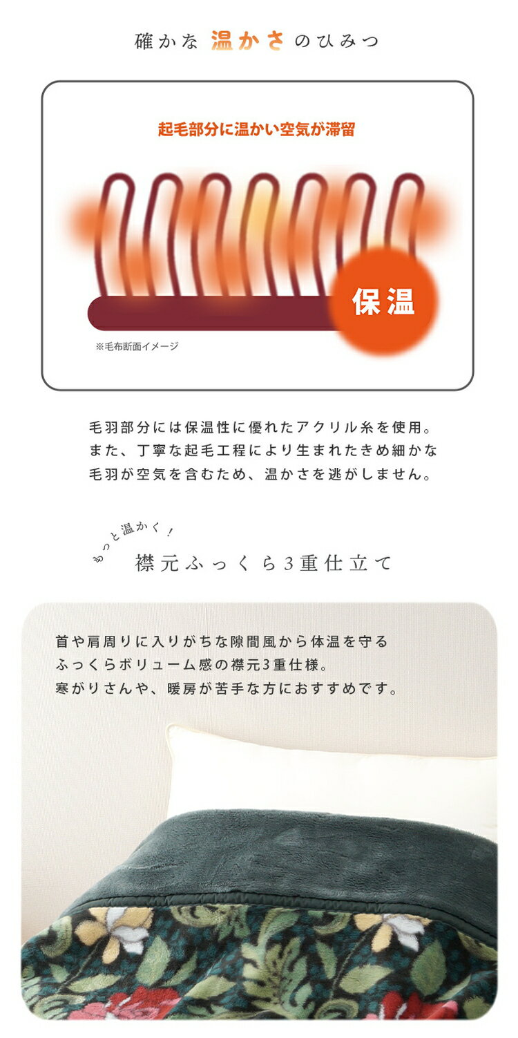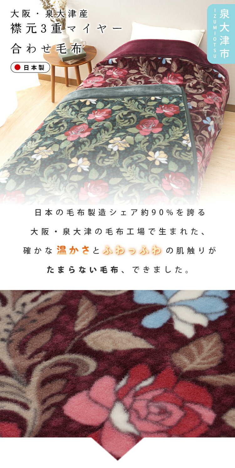 【ふるさと納税】【Dear Japan】襟元3重マイヤー合わせ毛布「バラ New Color」 シングル エンジ/グリーン 4221351F