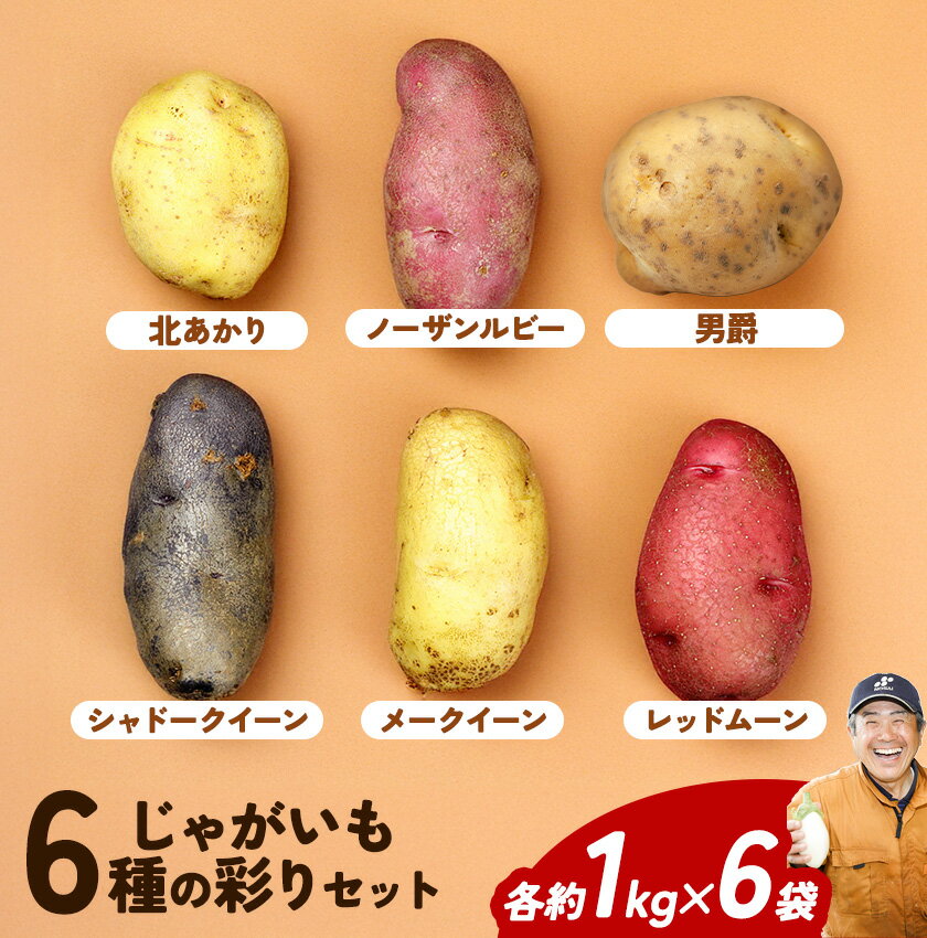 - 【ふるさと納税】じゃがいも6種の彩りセット 1kg × 6袋 元木農場《9月中旬頃から出荷(土日祝除く)》北海道 浦幌町 じゃがいも メークイン キタアカリ 男爵 シャドークイーン ノーザンルビー レッドムーン