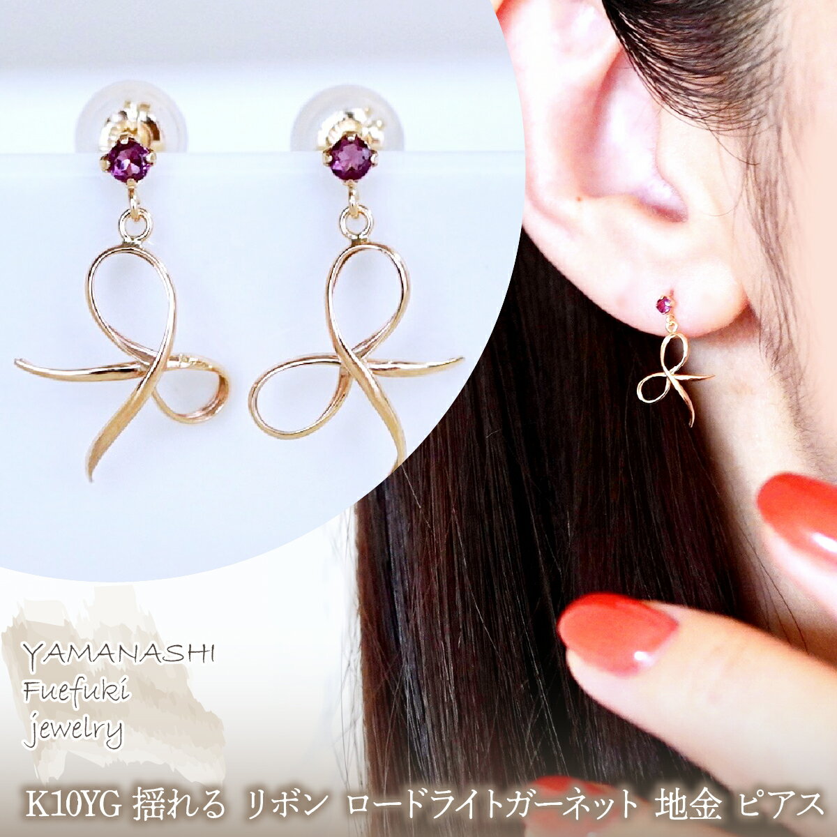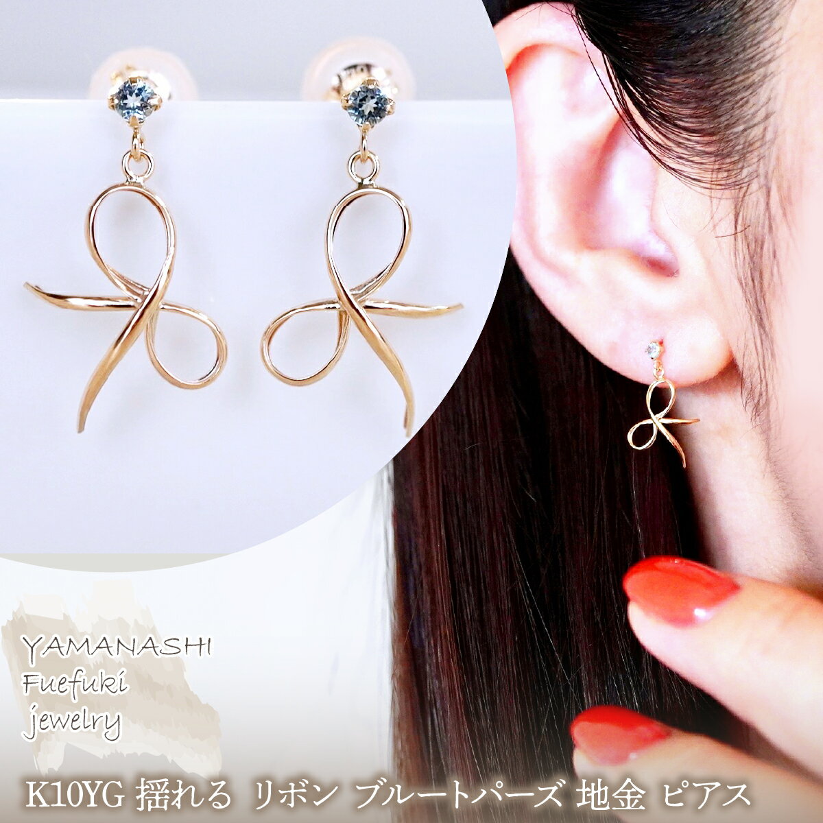 【ふるさと納税】K10YG(10金) イエローゴールド 揺れる リボン 選べる天然石 地金 ピアス 保証書付 SR-2370 242-056 ジュエリー アクセサリー 記念日 ギフト プレゼント エレガント 高品質 レディース 誕生石 誕生日 母の日 ふるさと納税 送料無料