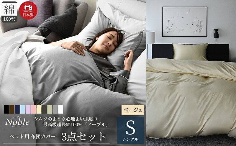 【ふるさと納税】日本製 超長綿100% シルクのような艶「ノーブル」 ベッド用布団カバー 3点セット シングルサイズ 選べるカラー 8色