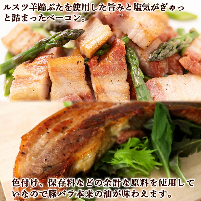 【ふるさと納税】ルスツ 羊蹄ぶた ベーコン 250g×3パック 計750g オンライン 申請 ふるさと納税 北海道 留寿都 極上ベーコン 無添加 豚肉 豚 肉 BBQ 焼肉 アウトドア 朝食 お弁当 おかず 惣菜 おつまみ 留寿都産 国産 留寿都村【2200601】